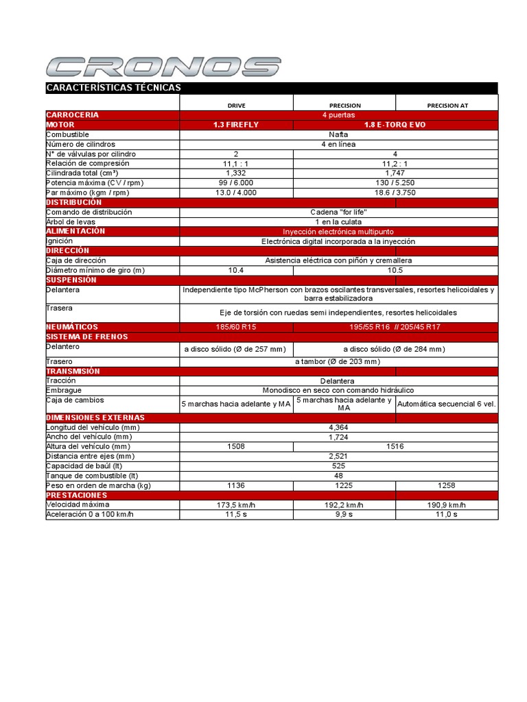Ficha Tecnica Fiat Cronos My20 Eje Transmision Mecanica